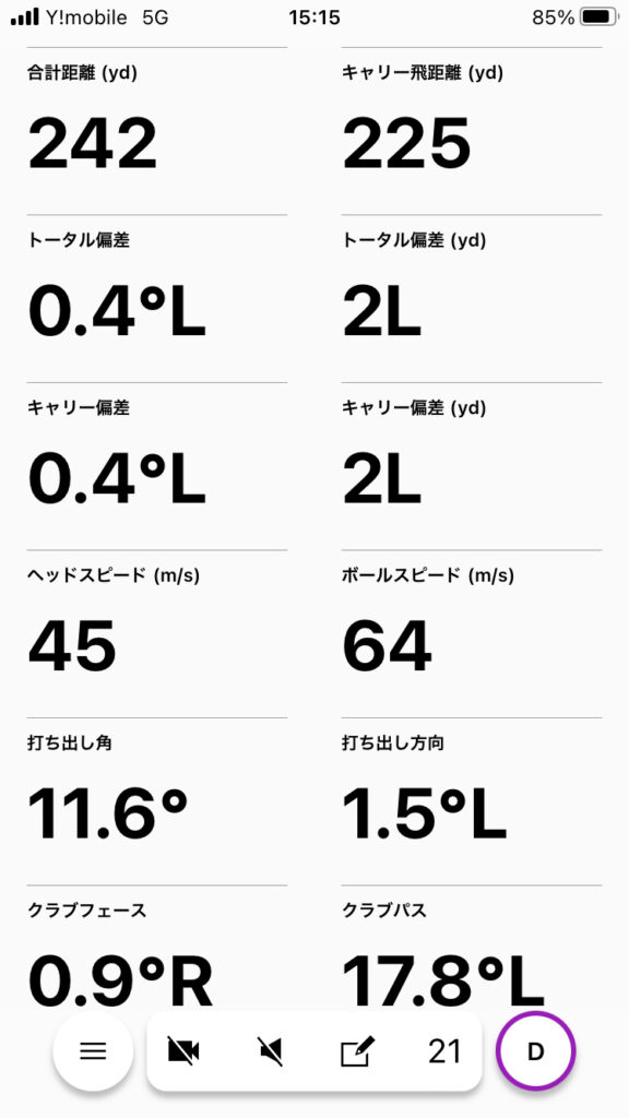 冬なのでヘッドスピード45出てるし、ボールスピードが練習場ボールにしては、64だからまあまあ。