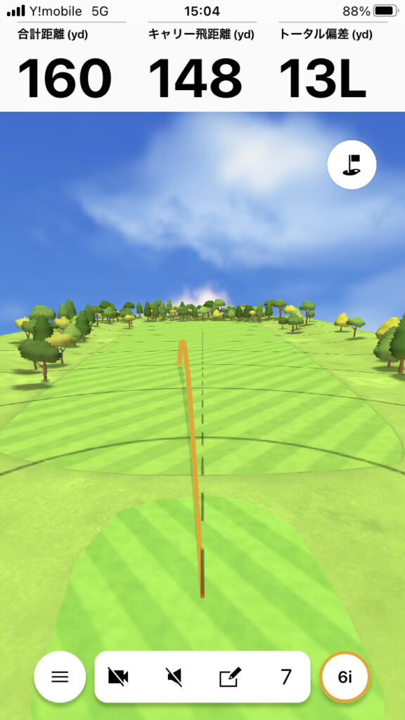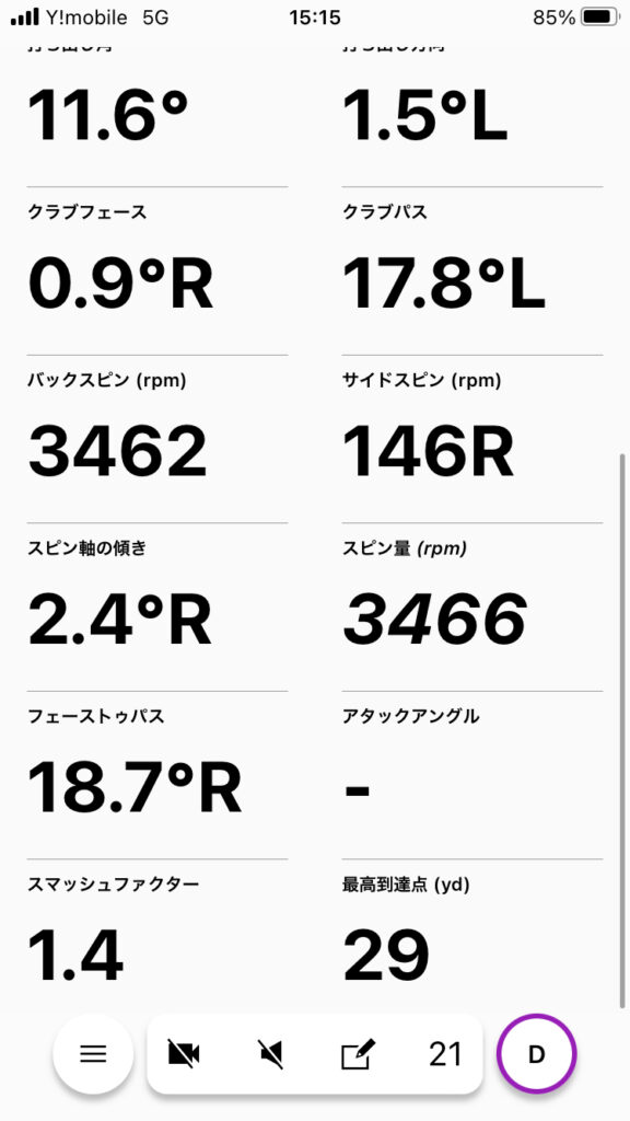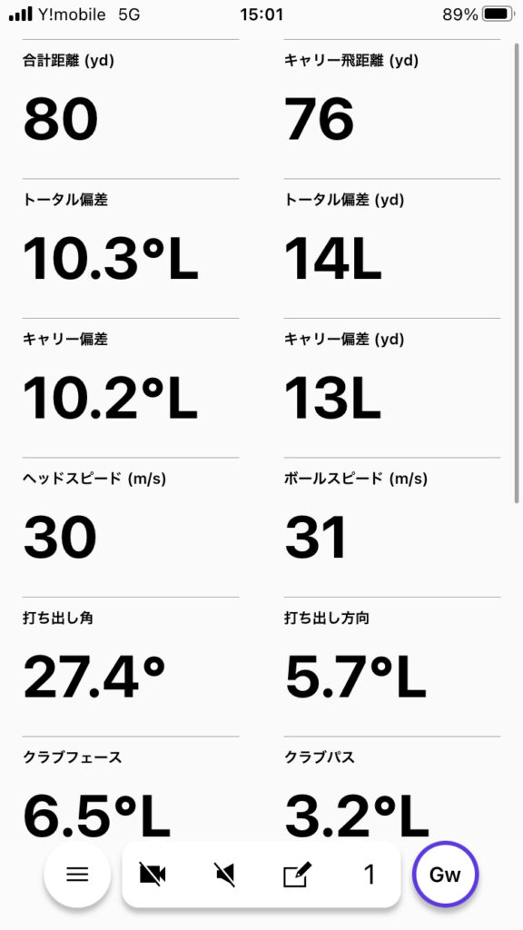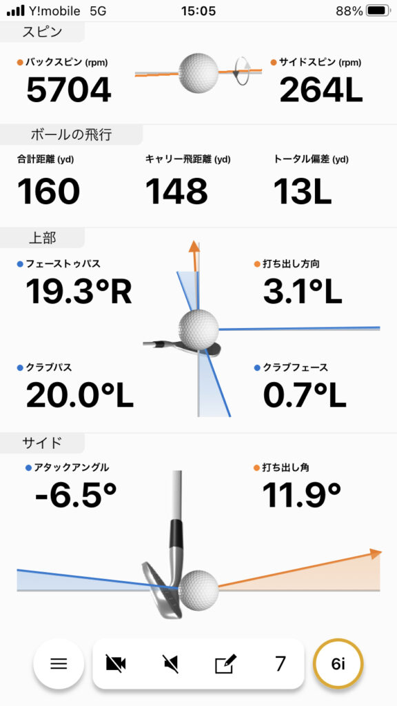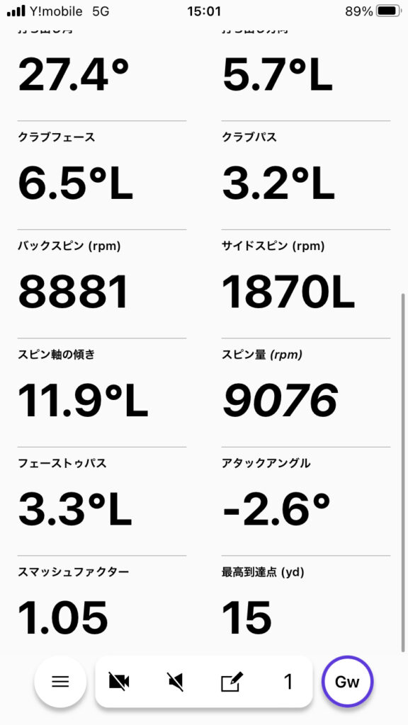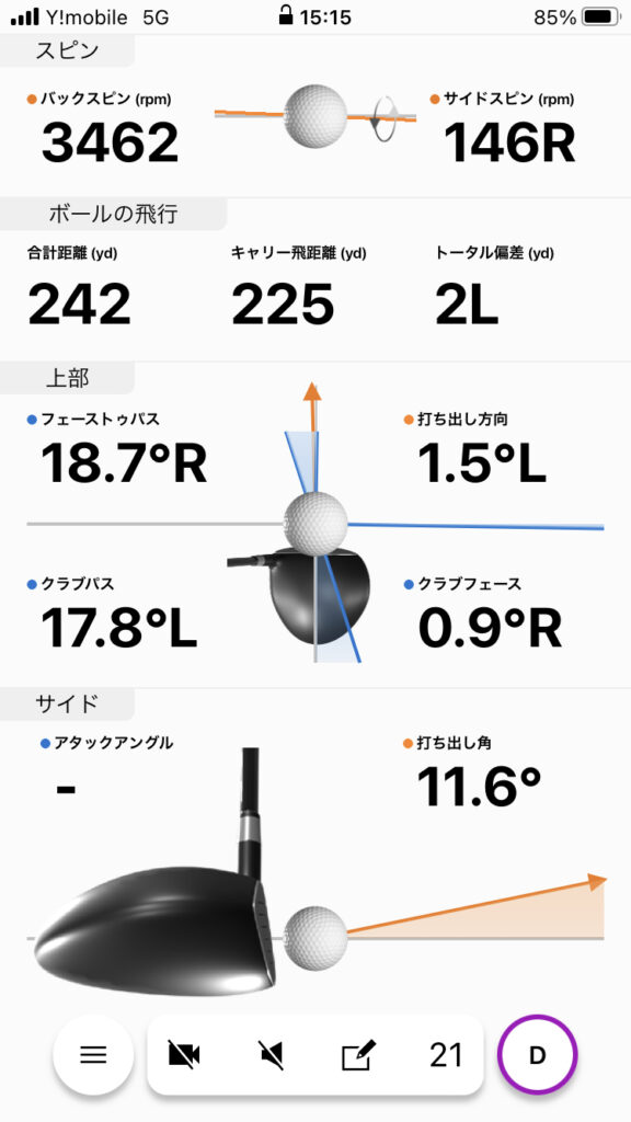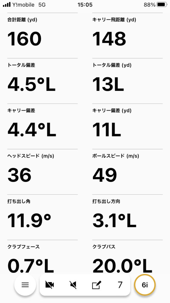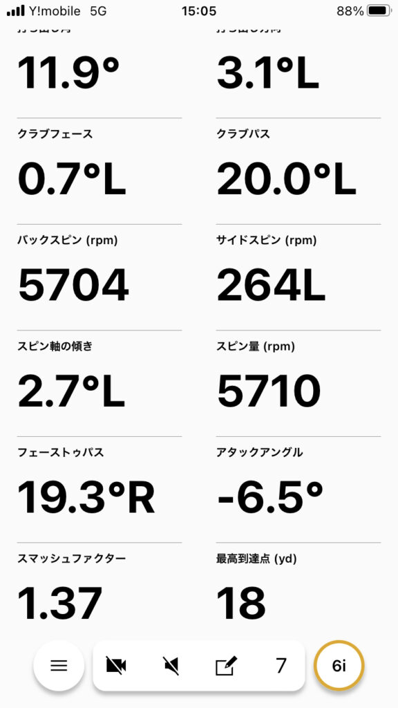 アタックアングルが表示されなかったですが(たまたま)、打ちだし角が12°ぐらい出ているので、中弾道としてOK。