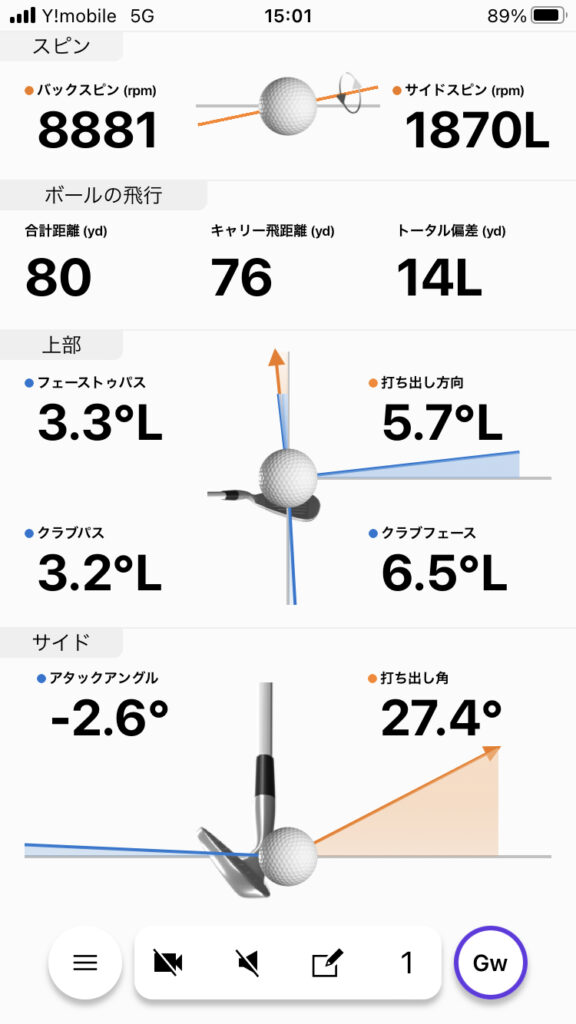 アタックアングルがウェッジにしては、浅いので、もう少しダウンブローで打ちたいです。