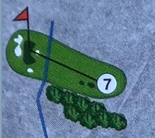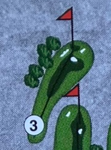 距離の長いパー3手前のクリークに注意しながら、番手は大きめで