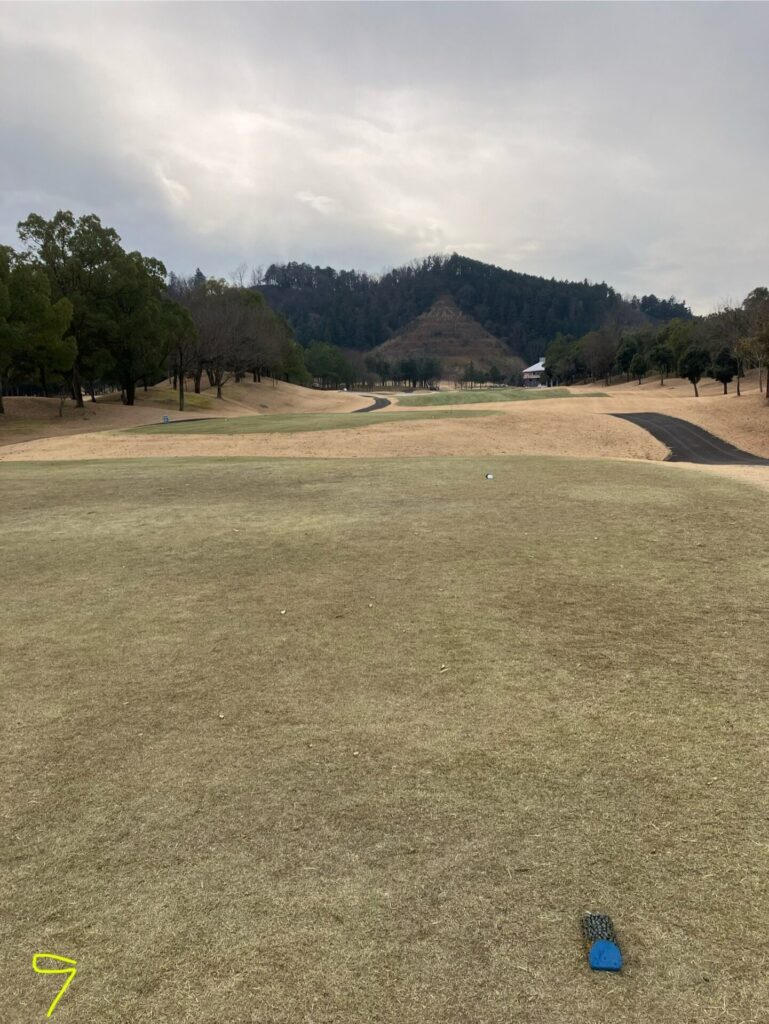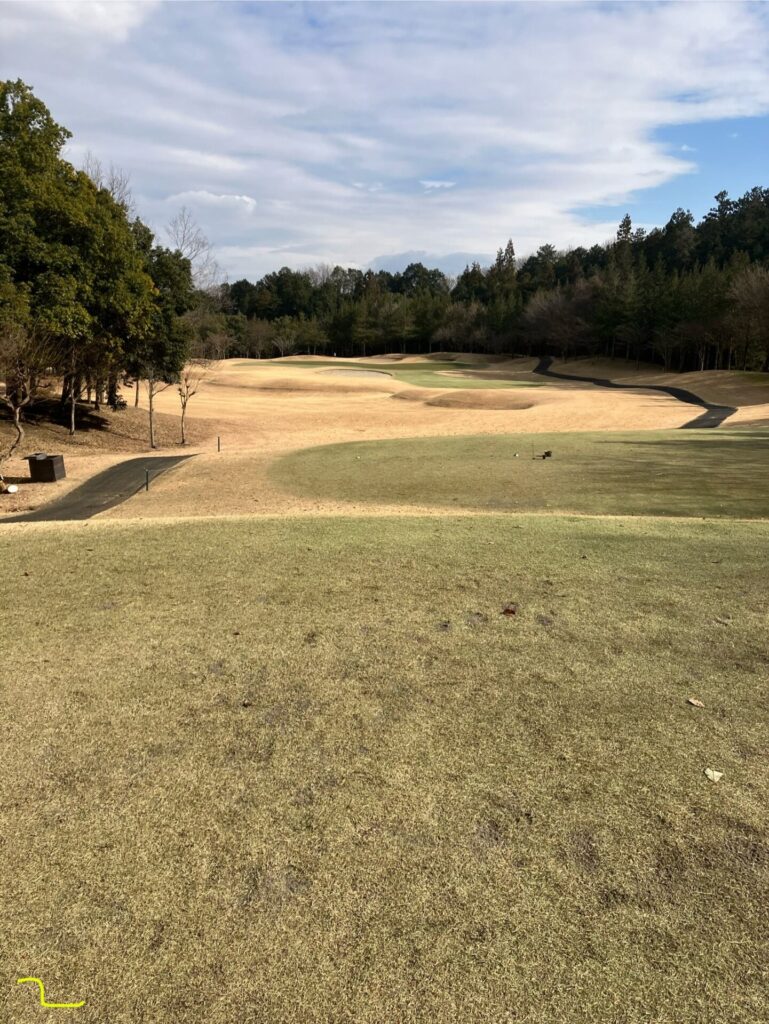 ・左側バンカーまでは280Yなので、そちらの方向に狙って打つ