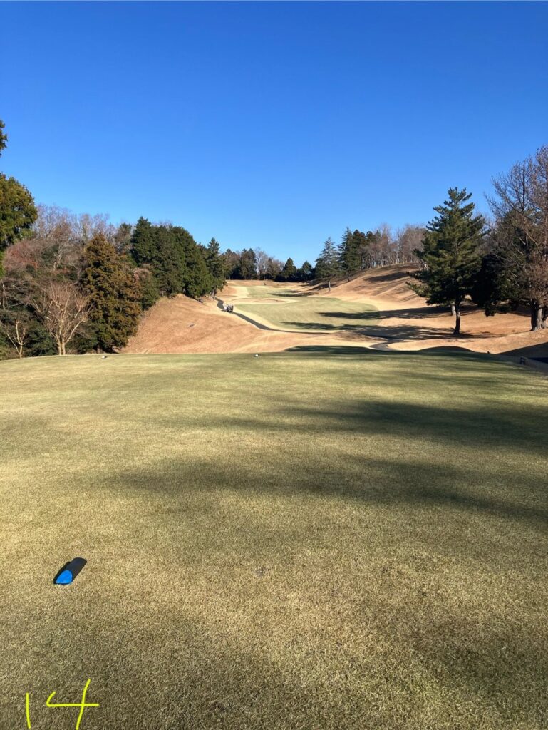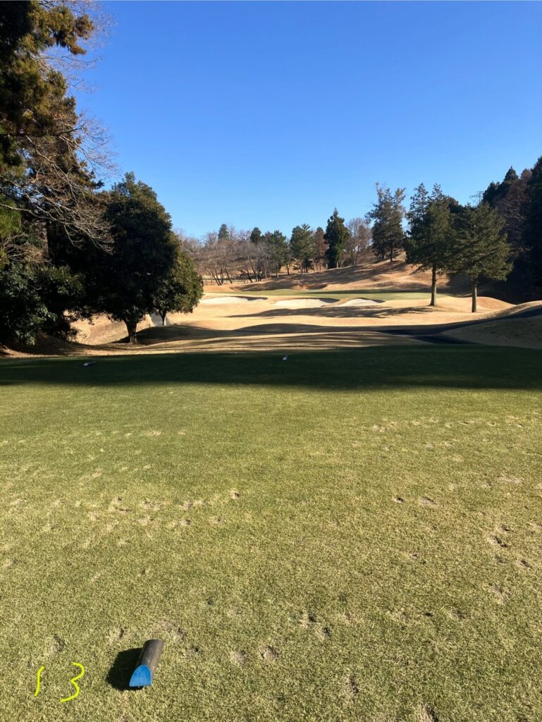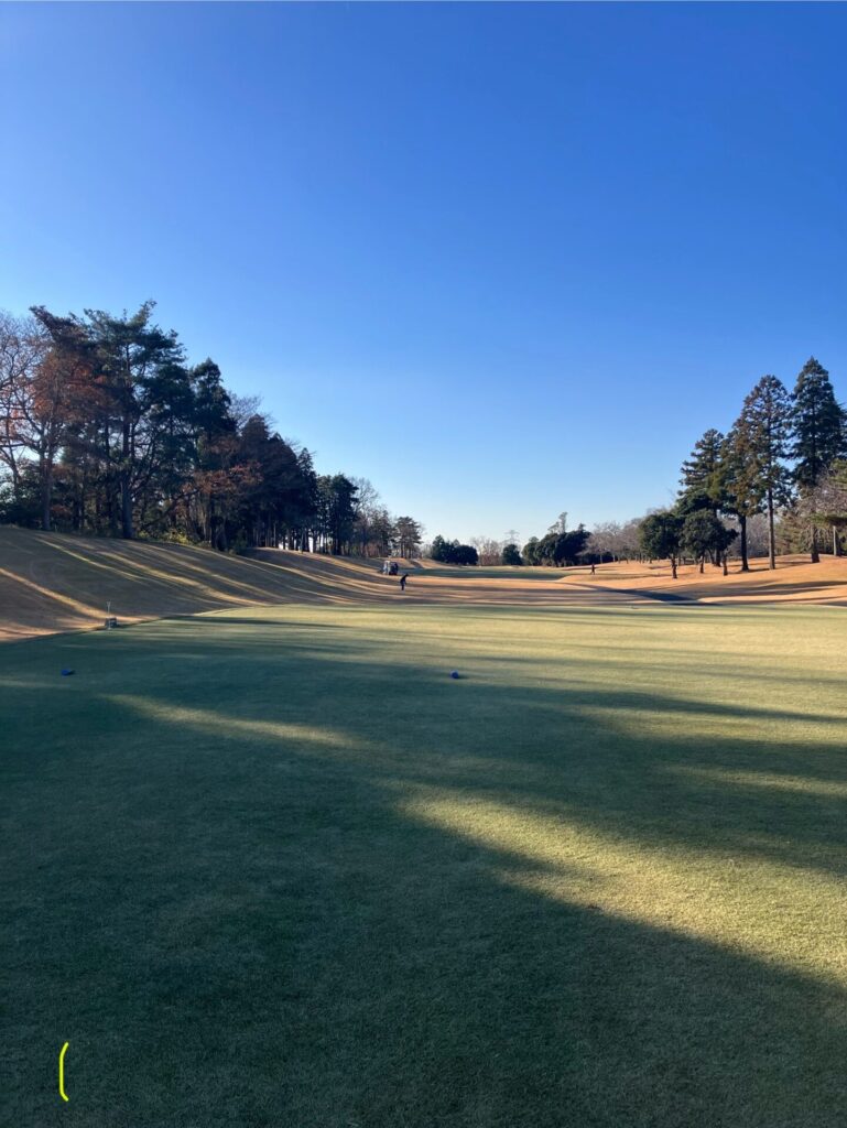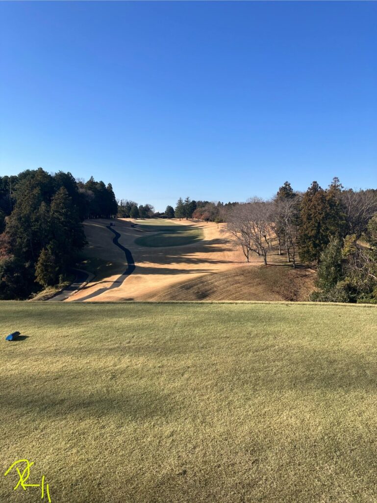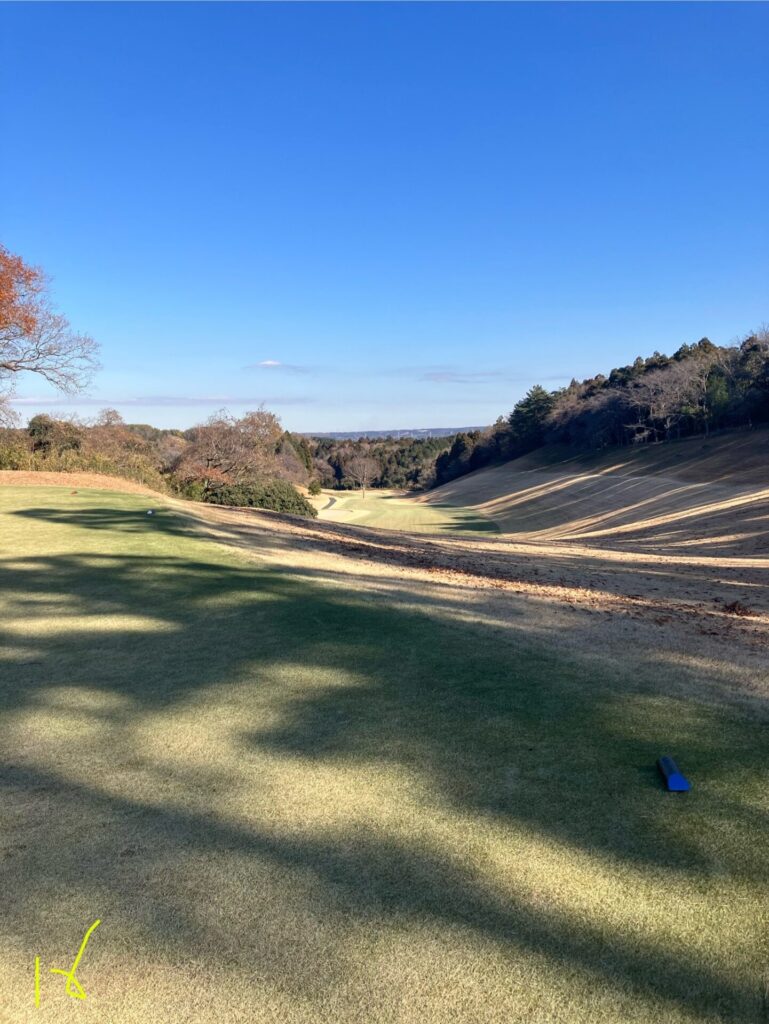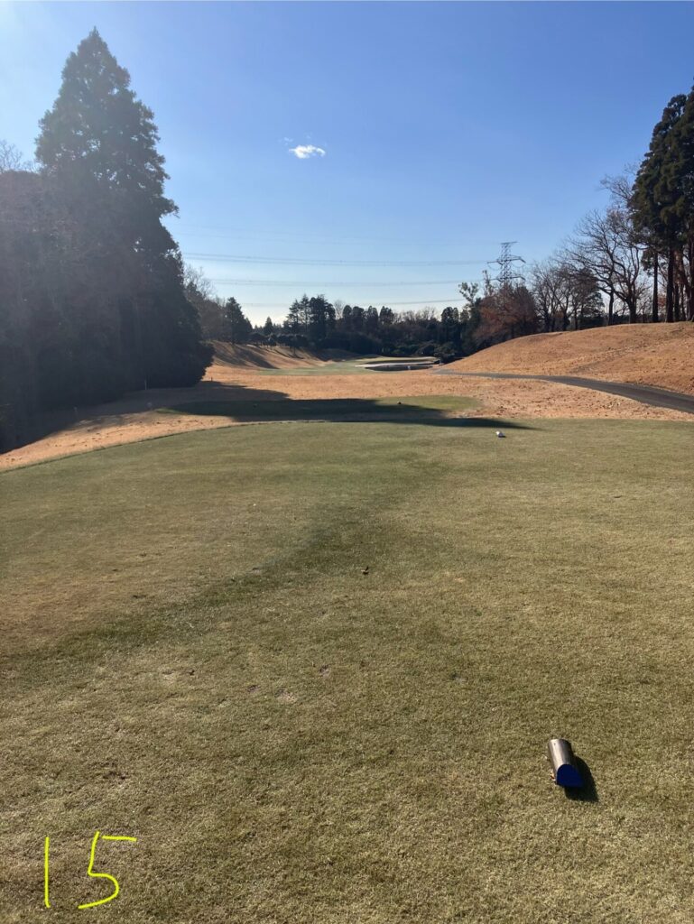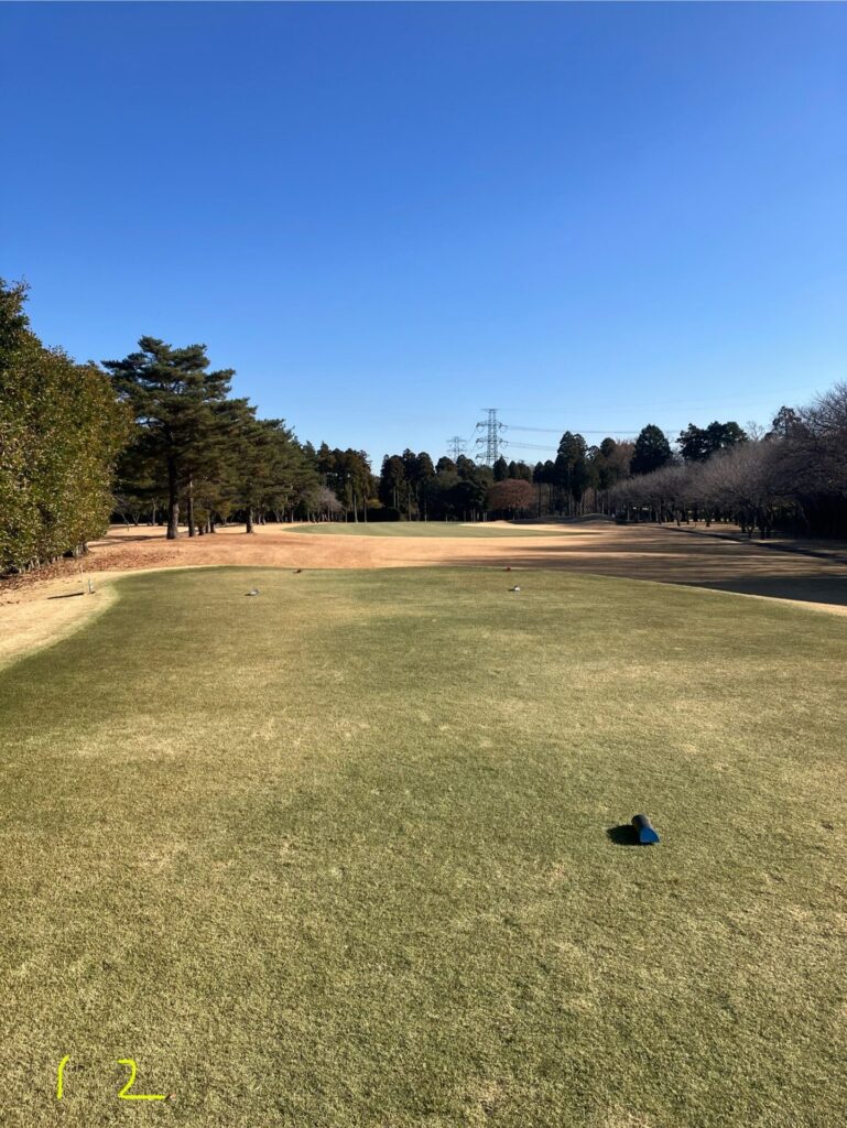 ・200yー210yのフェアウェイセンターより少し左側狙い。一見するとドライバーで狙いたくなるが、右側が狭いのと、セカンドの両サイドのフェアウェイ間と右側には細い木がたくさん生えているので落としどころが難しいので、刻んだ方がよし。