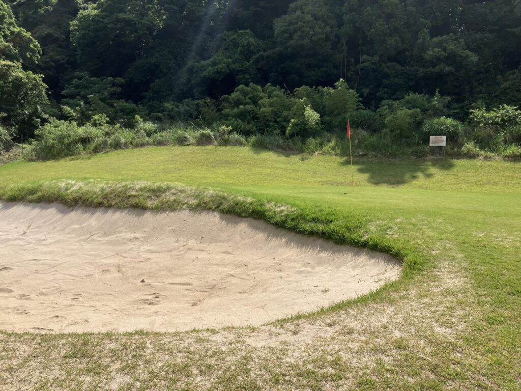 ・フェアウェイは一見広く見えるが、左右すぐに曲がるとワンペかOBなので、個人的には狭く感じた。距離もそこまでないので、300ヤード台のところは、ティーショットは200ヤード飛べば十分なのでドライバーはそこまで持たなくてよし
