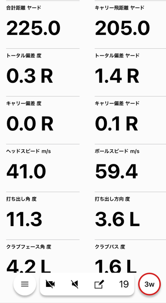 参考までに、購入後にゴルフ練習場で打ったガーミンアプローチR10の計測結果を添付いたします。